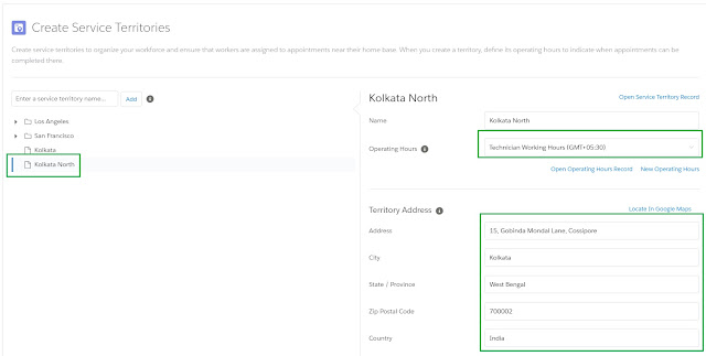 Create Service Territories [Kolkata (Under Kolkata à Kolkata North and Kolkata